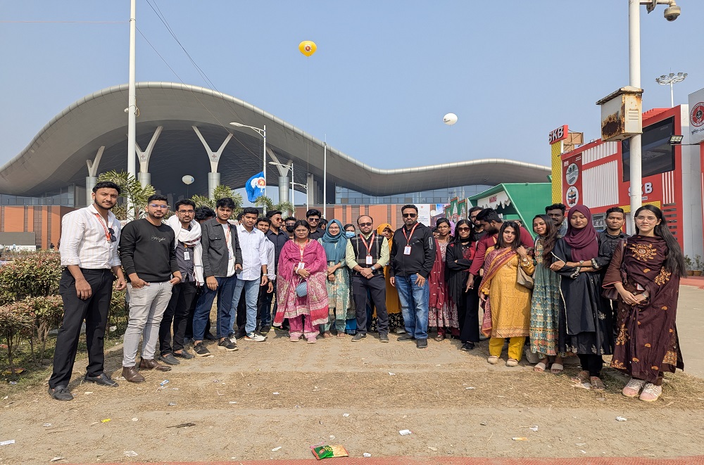 The Department of Business Administration, University of South Asia, successfully organized an industry visit to the Dhaka International Trade Fair (DITF 2026) on Sunday, January 25, 2026. The visit aimed to provide students with practical exposure to trade, marketing practices, and real-life business operations. The visit was accompanied by Dr. Mohammad Nazrul Islam, Associate Professor and Dean, School of Business, Md. Karimul Alam, Head & Assistant Professor, Rumpa Mittro, Assistant Professor & Coordinator of the BBA Program, and Sumaiya Taslima Tithi, Lecturer, Department of Business Administration, University of south Asia. The industry visit enriched students’ experiential learning by bridging theoretical knowledge with real-world business practices.