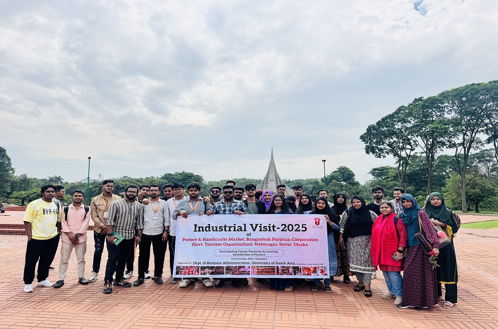 | Department of Business Administration, University of South Asia, successfully conducted an industry visit to the Pottery & Handicrafts Market, Bangladesh Parjatan Corporation (Govt. Tourism Organization), Nabinagar, Savar, Dhaka on Saturday, 11th October 2025.