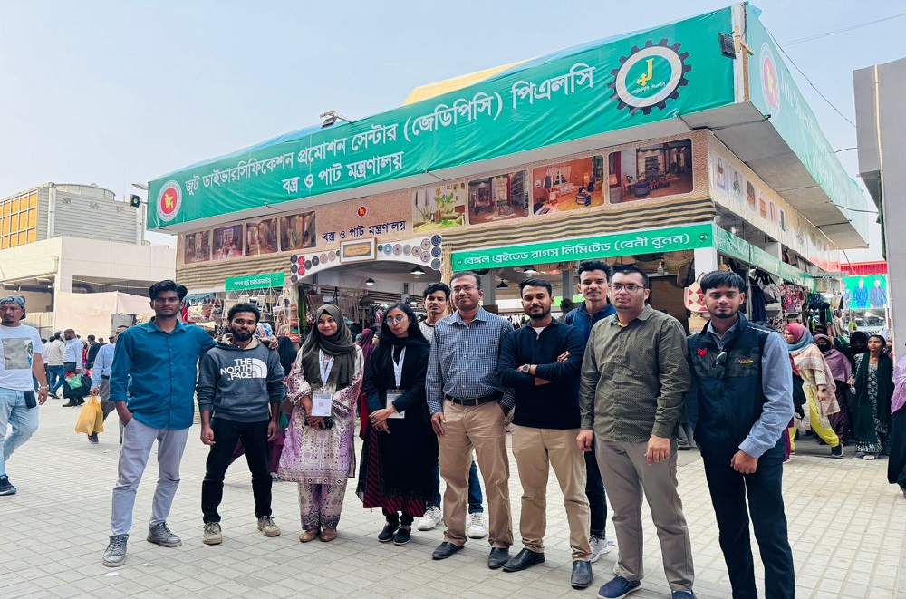The journey began at the Dhaka International Yarn & Fabric Show (DIFS) 2026, where our team explored the latest global trends in raw materials and fabric technology. To top off the day, we visited the Jute Diversification and Promotion Center (JDPC) PLC stall at the Dhaka International Trade Fair—a brilliant initiative by the Ministry of Textiles and Jute showcasing the sustainable future of "The Golden Fiber." 🇧🇩